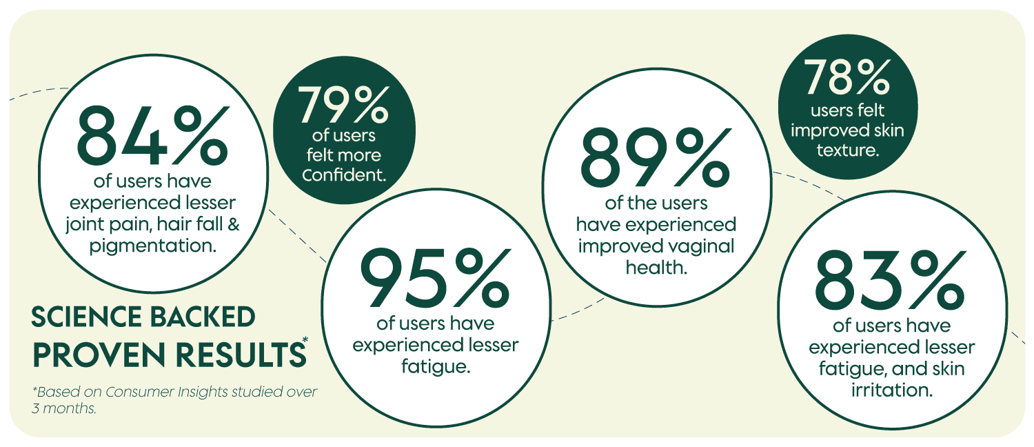 Asaya by Menoveda is a precision formula that combines the power of Neem, Guduchi, Shatavari, Abrak Bhasm, Guggul, Haldi, Loh Bhasm, Babul, Sweet Indrajao, Amla, Anantmool, & Chirata to alleviate menopause symptoms.