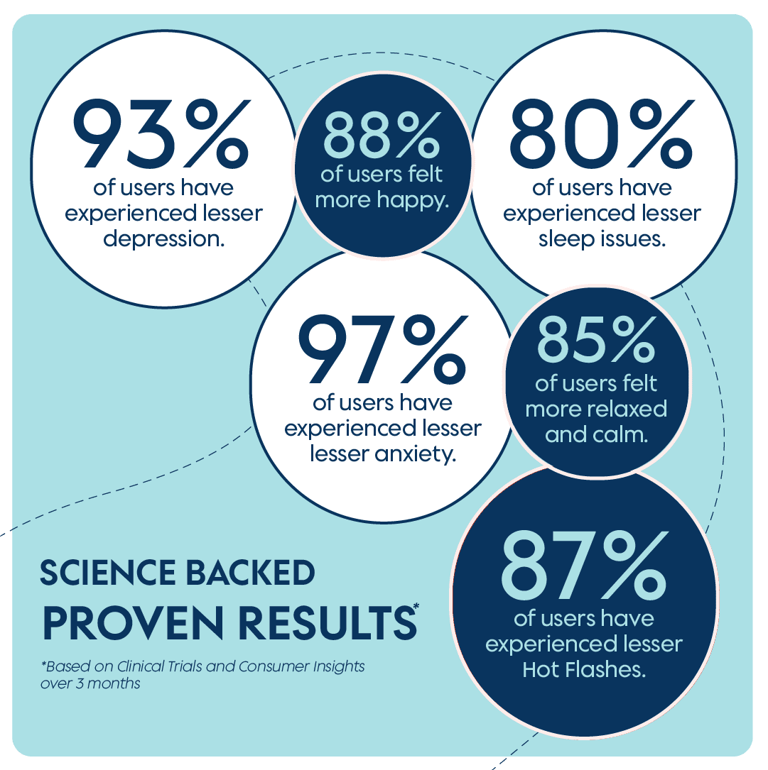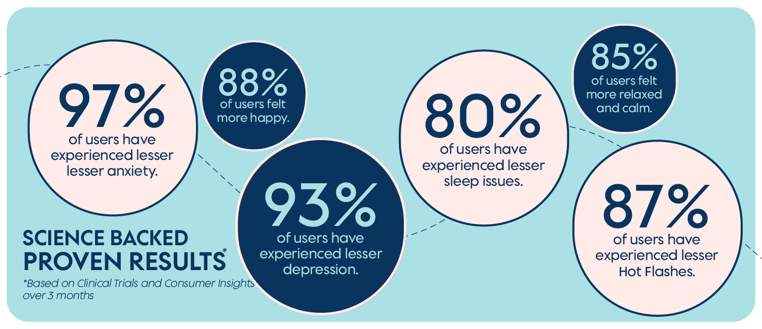 • Helps in Mood swings, Hot flashes & Night sweats