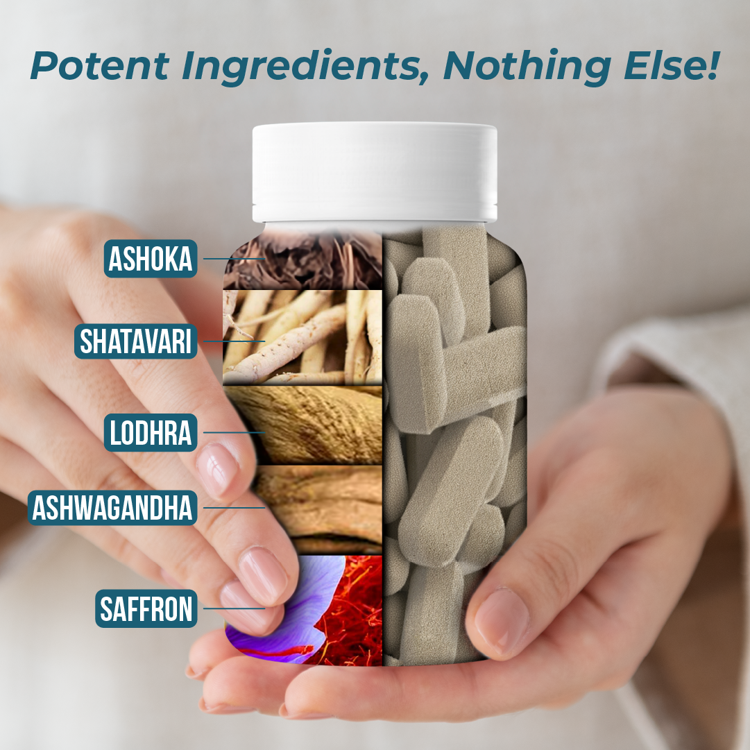 - ✓ Balances hormones naturally (PCOS, PCOD, PMS)